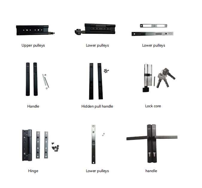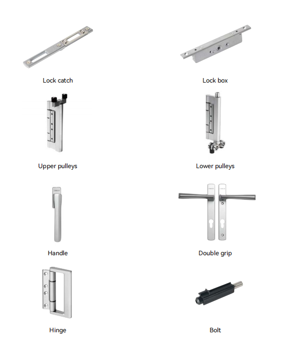 | Main hardware | Lock, handle, hinge, roller | Heavy-duty hardware set |