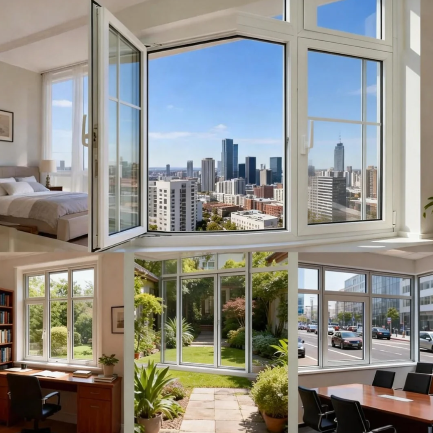 PVC casement windows are designed for long-term stability and energy efficiency. The multi-point locking system improves security, while the PVC structure offers strong resistance to corrosion and aging. These windows are ideal for buildings that require consistent performance and low maintenance.