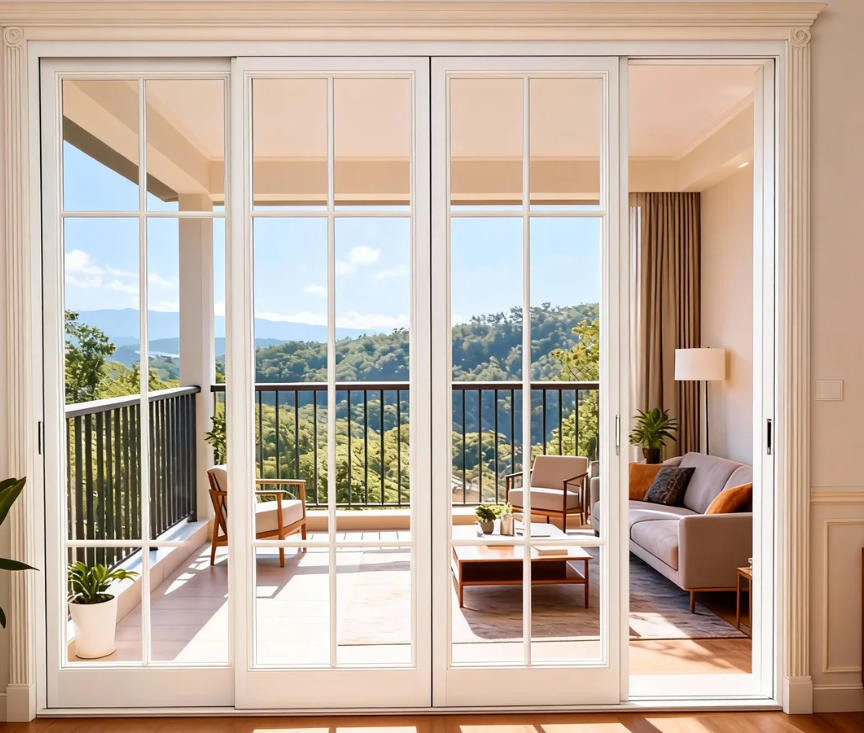 This double-glazed PVC sliding door combines modern design with practical performance. The insulated glass unit reduces energy consumption while improving indoor comfort. The multi-chamber uPVC frame, reinforced with galvanized steel, ensures excellent rigidity and wind resistance. The nail fin installation system enhances water tightness and simplifies integration into new construction projects. With smooth sliding hardware, optional insect screens, and multiple glass configurations, this sliding door is a reliable choice for residential developments, hotels, and commercial buildings.